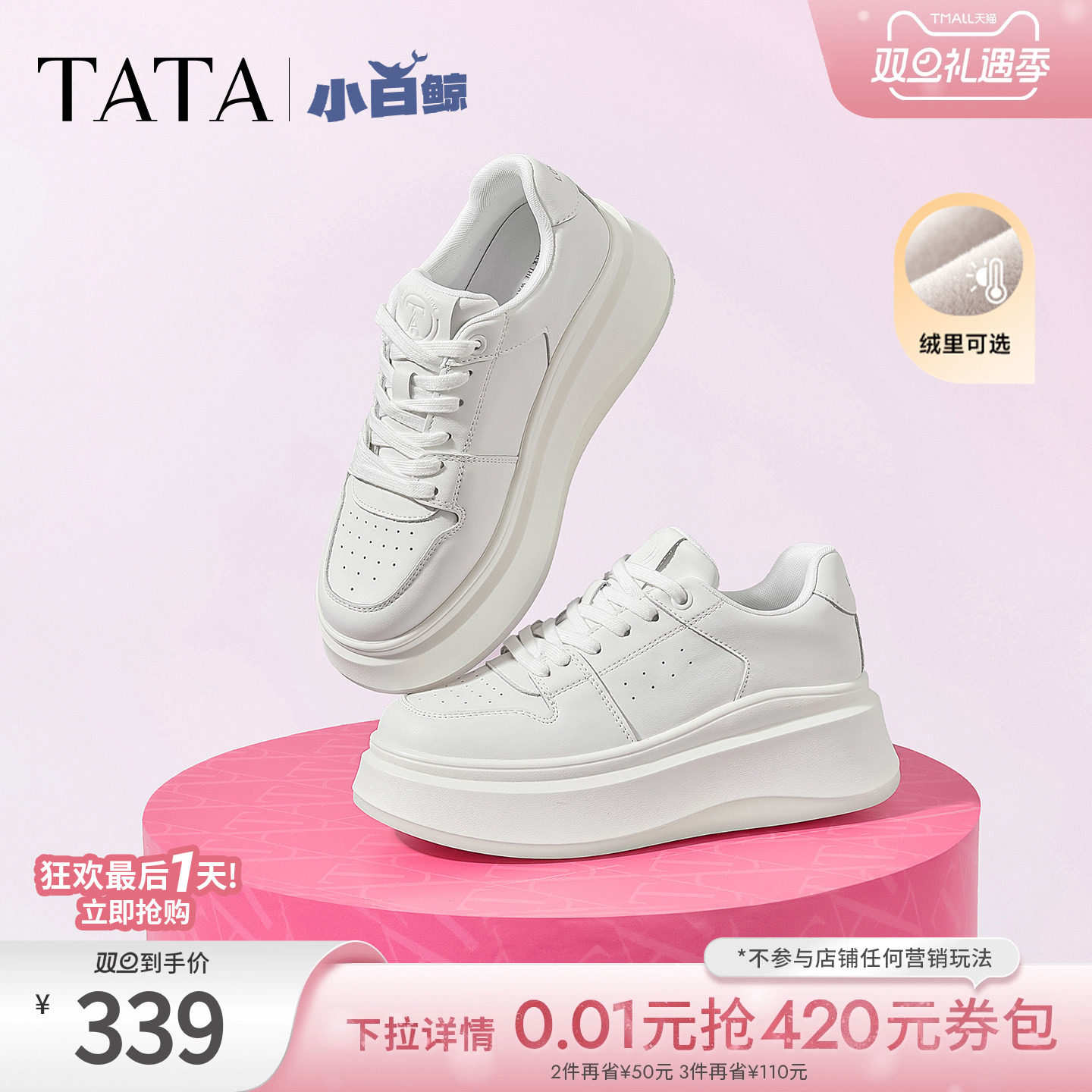孙乐言同款TATA他她女鞋小白鲸鞋厚底加绒板鞋小白增高休闲鞋子
