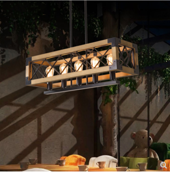 loft工业风吊灯创意个性餐厅奶茶店收银前台吊灯餐桌长条原木吊灯