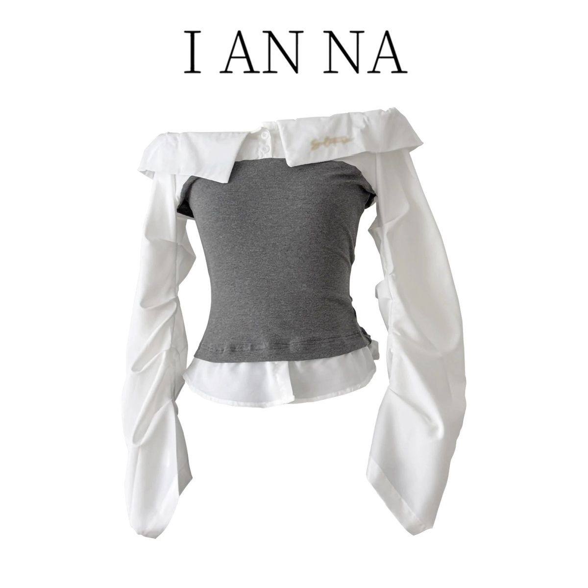 韩版辣妹露肩一字领拼接长袖衬衫女秋季新款修身显瘦短款衬衣上衣