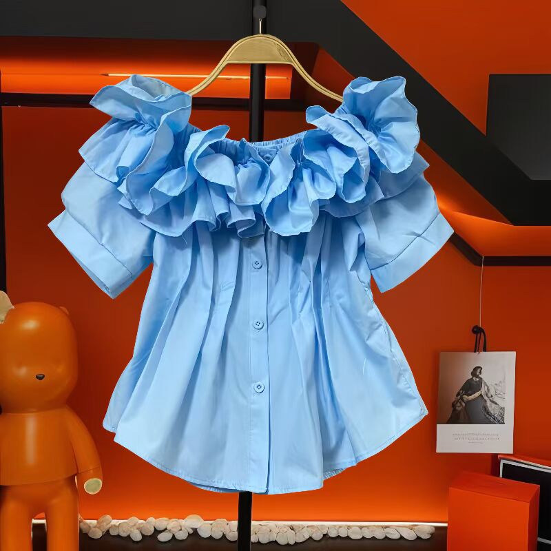 复古露肩一字领荷叶边碎花衬衫女2025春夏新款韩版设计感短款上衣