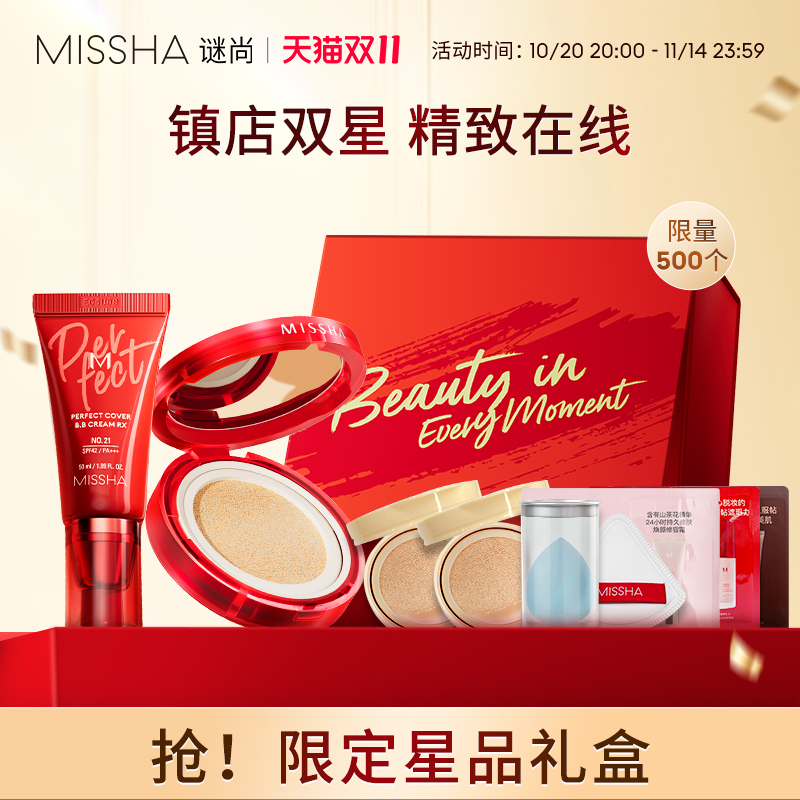 Missha/谜尚大红BB霜50ml*1+经典红气垫15g*3水润持妆防晒遮瑕