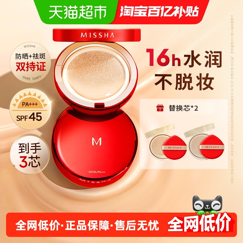 Missha谜尚红气垫bb霜美白遮瑕巨水润防晒16小时持久不易脱妆粉底