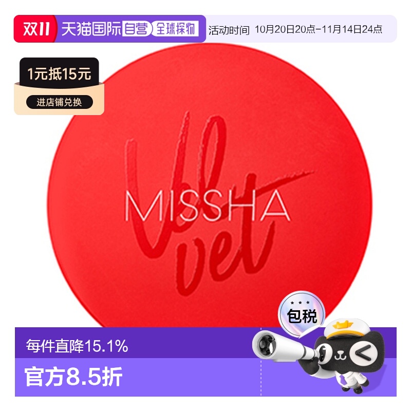 自营 MISSHA谜尚大红遮瑕气垫BB霜15g #23自然色效期2026/8/正品