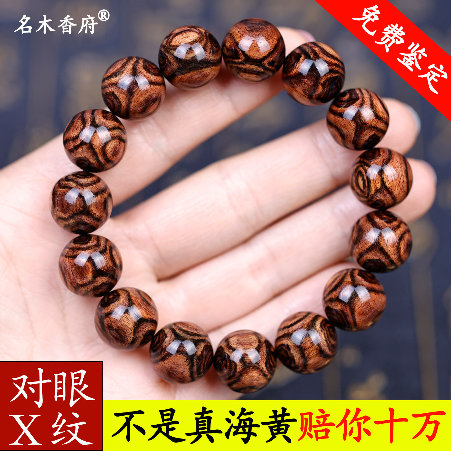 正宗海南黄花梨对眼X纹鬼脸纹1.5手串老料海黄糠梨15MM手链佛珠