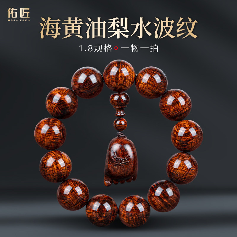 佑匠正宗海南黄花梨手串1.8油梨水波纹佛珠手链文玩把件一物一拍