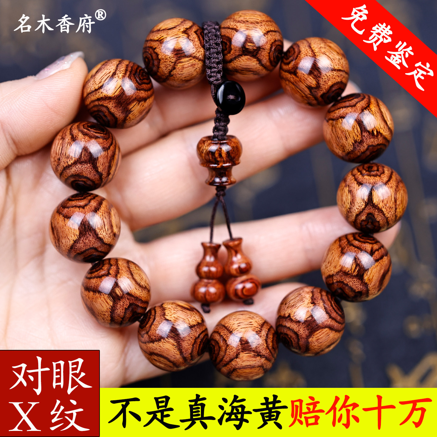 正宗海南黄花梨对眼X纹鬼脸纹1.8手串老料海黄糠梨18MM手链佛珠