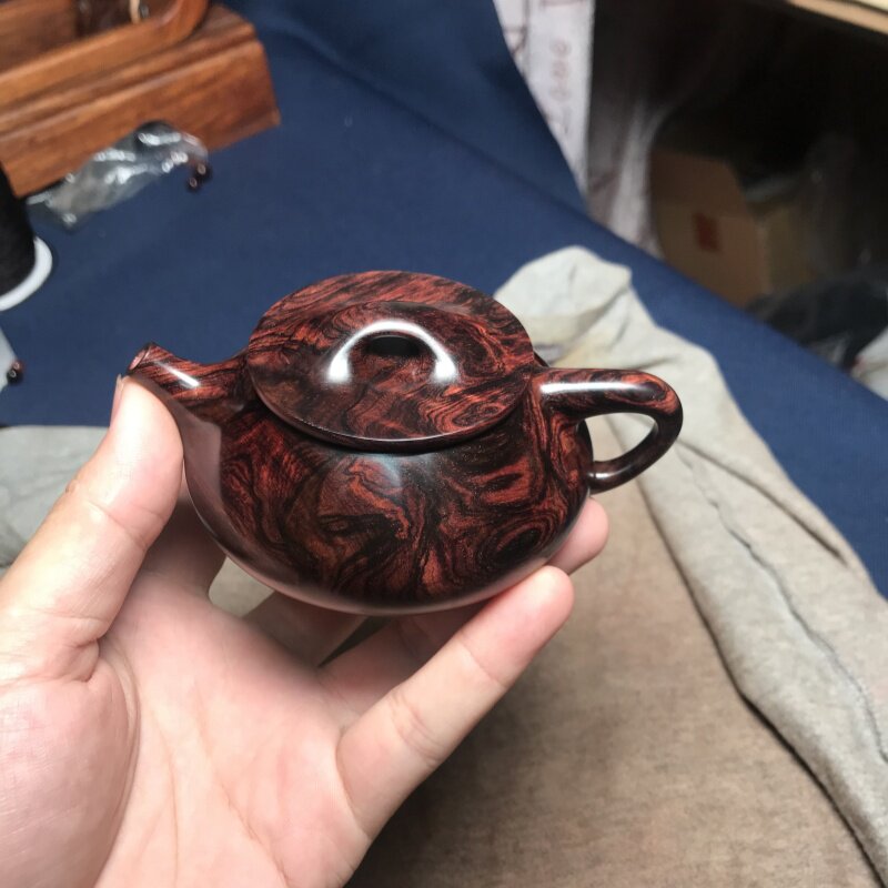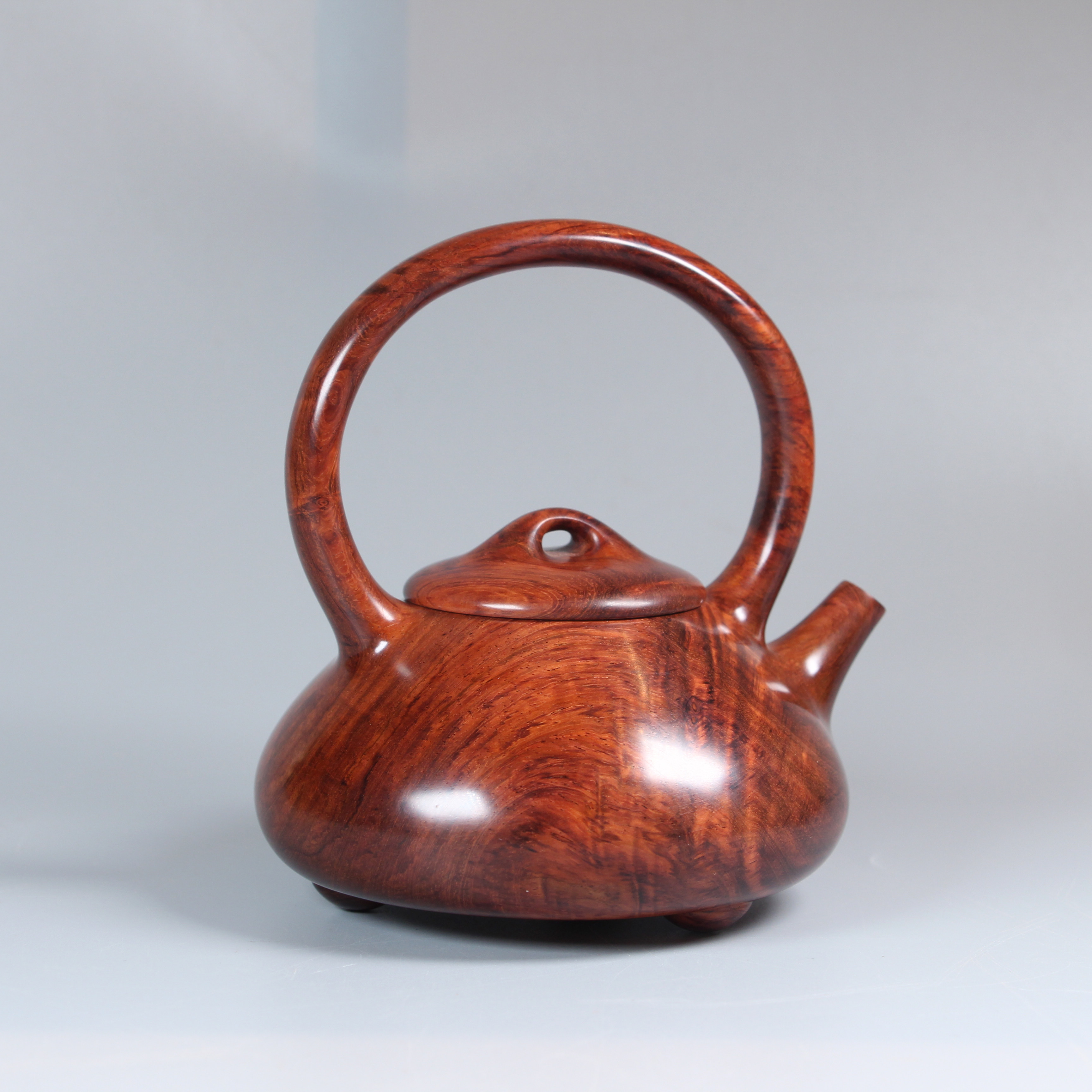 正宗海南黄花梨提梁壶整木制作水波纹红油梨手串中式观赏茶壶礼品
