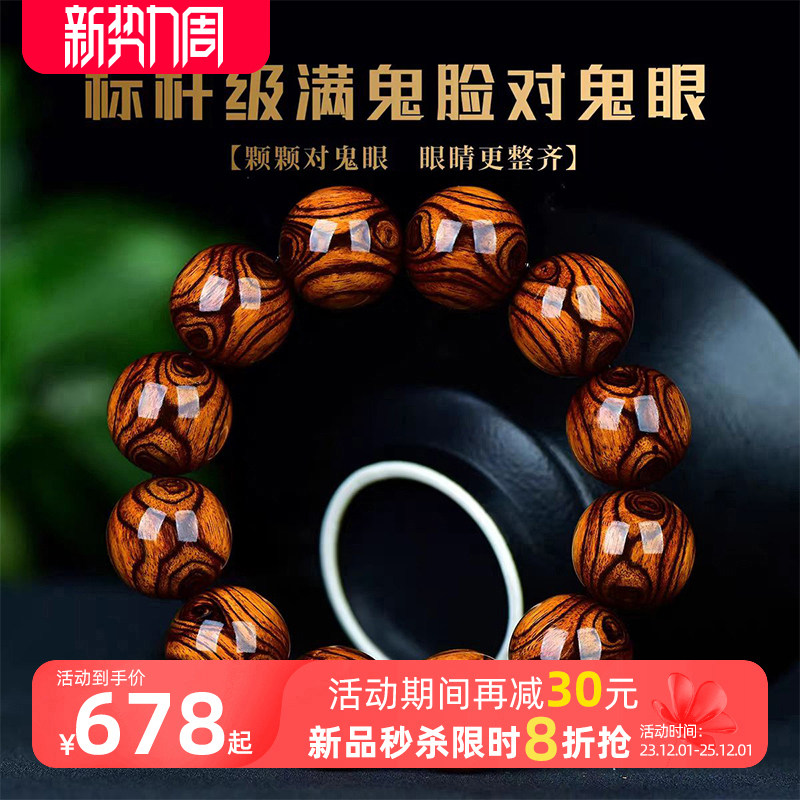 正宗海南黄花梨海黄紫油梨老料全对眼满鬼脸2.0男士佛珠手串手链