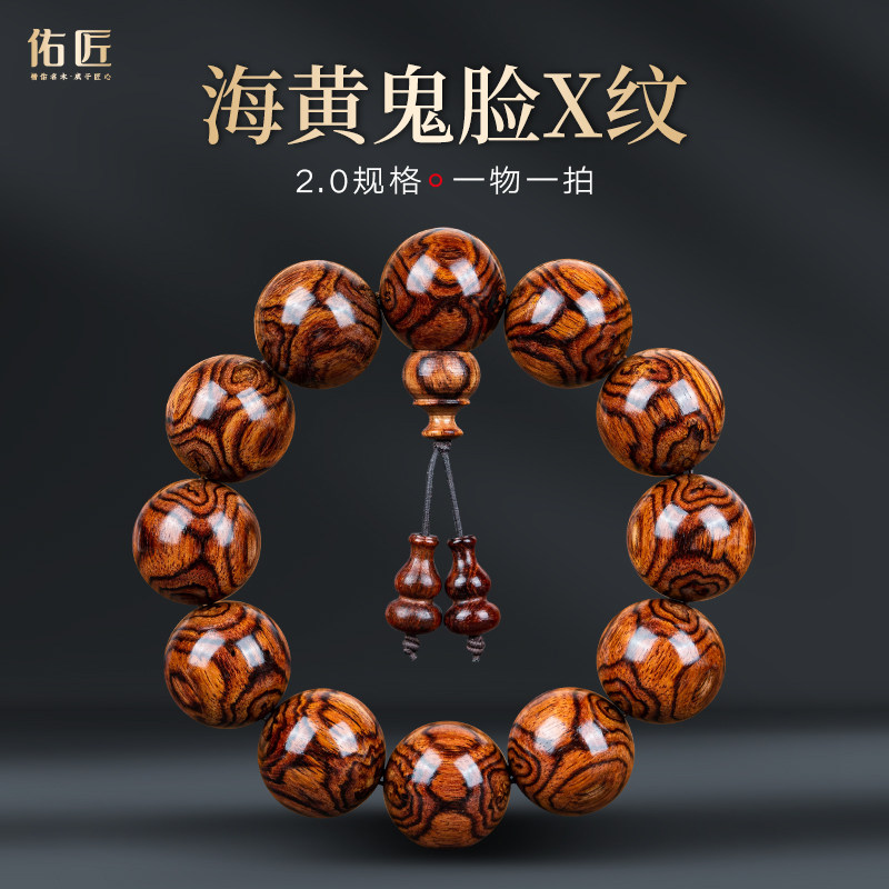 佑匠海南黄花梨手串2.0海黄对眼鬼脸X纹佛珠手链文玩把件一物一拍