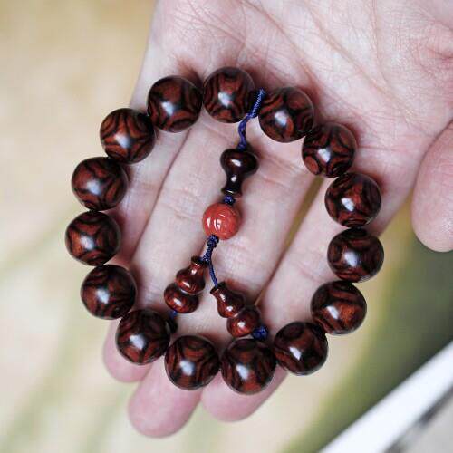 正宗海南黄花梨霸王岭帝王紫油梨老料佛珠手串15mm满鬼脸对眼1.5
