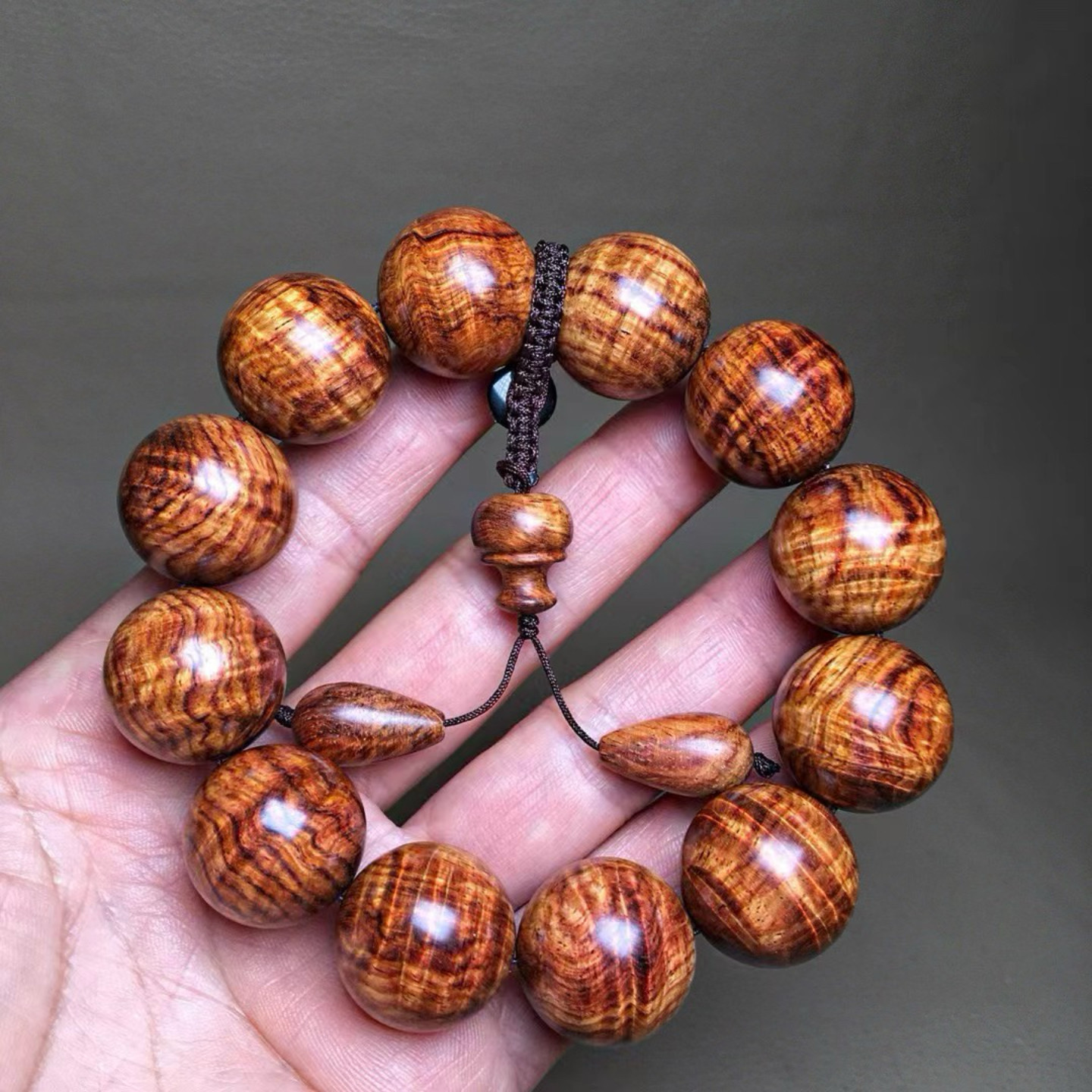 正宗海南黄花梨老料帝王紫油梨手串1415老型珠桶珠水波纹虎皮纹