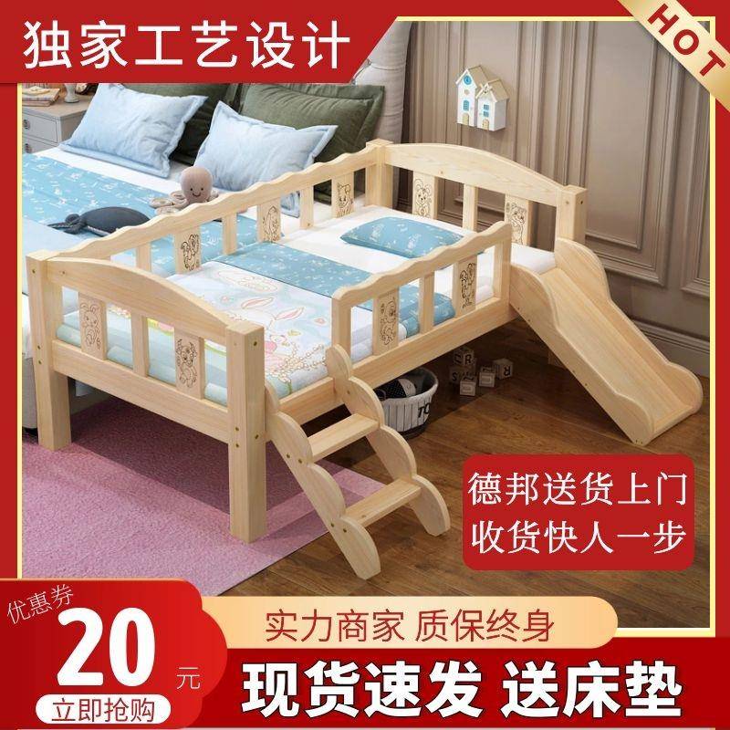 实木婴儿床儿童宝宝床带护栏围栏拼接大床加宽男女孩小床滑滑梯床
