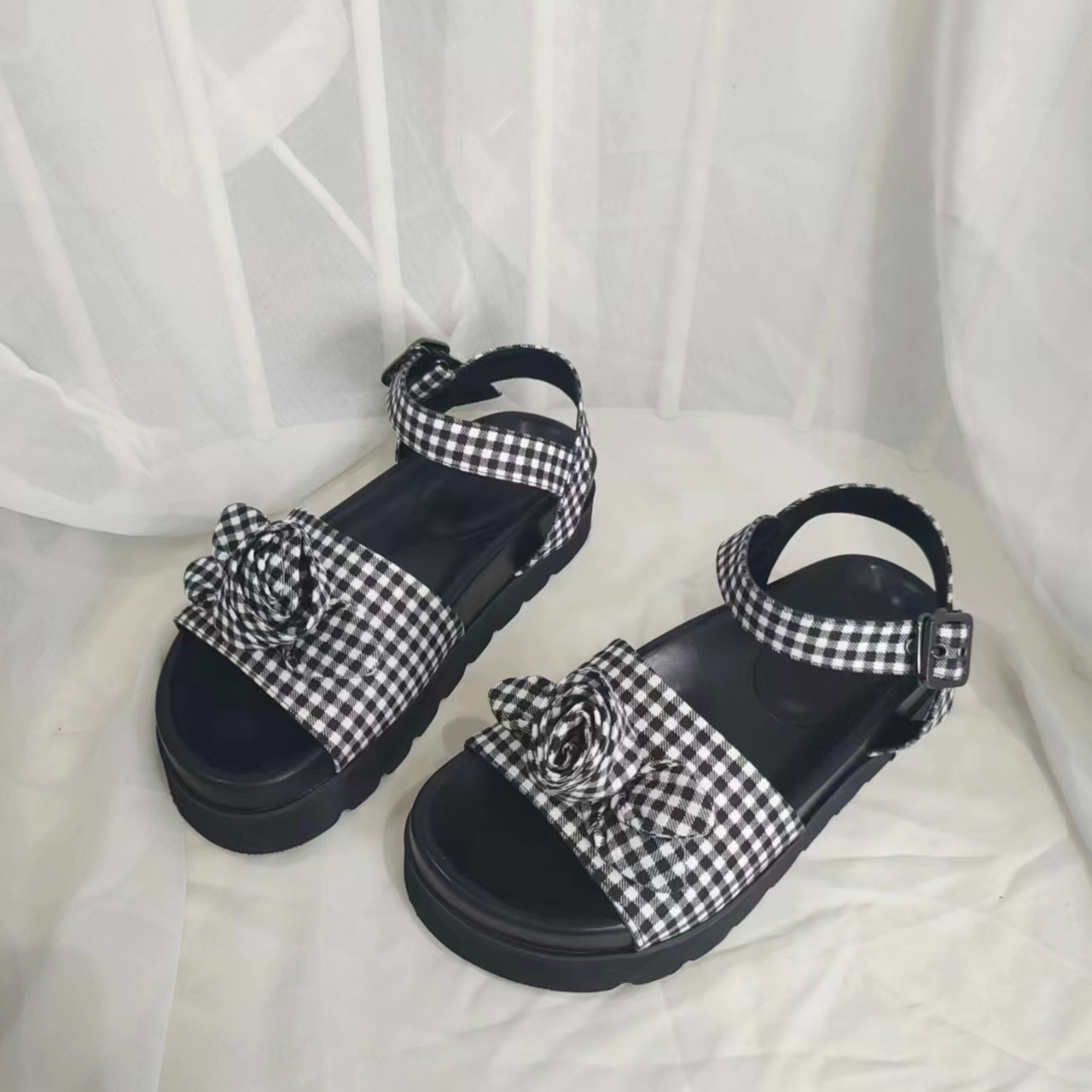 丝绸牛皮真皮防水台增高日系女鞋子魔术贴露趾时装凉鞋T70-1