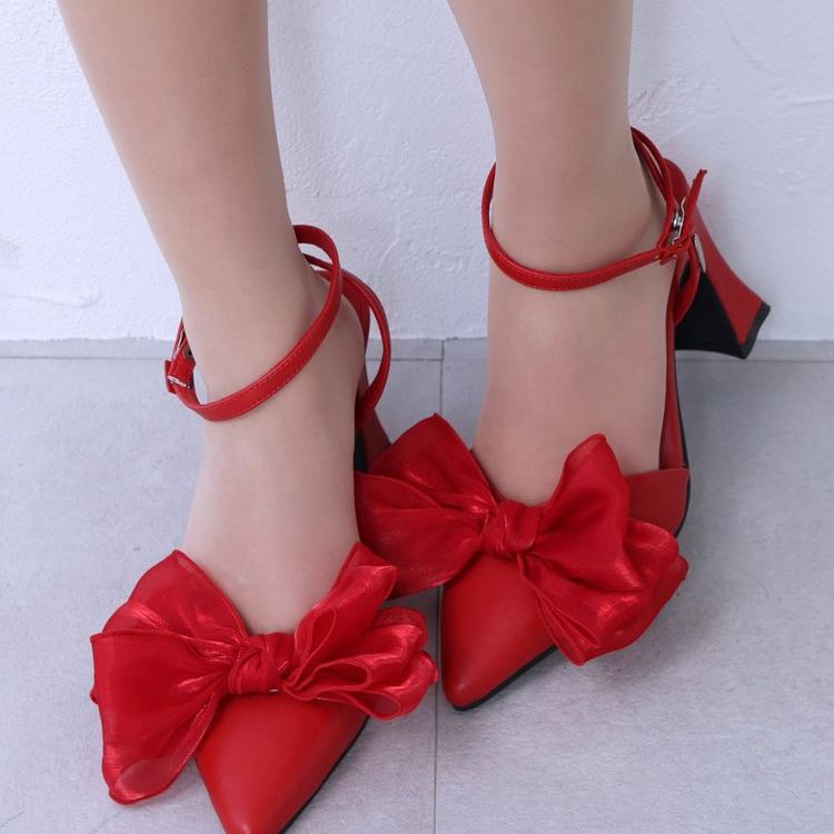 MJ温柔仙女风!法式复古蝴蝶结小猫跟尖头日系女鞋通勤鞋玛丽珍鞋
