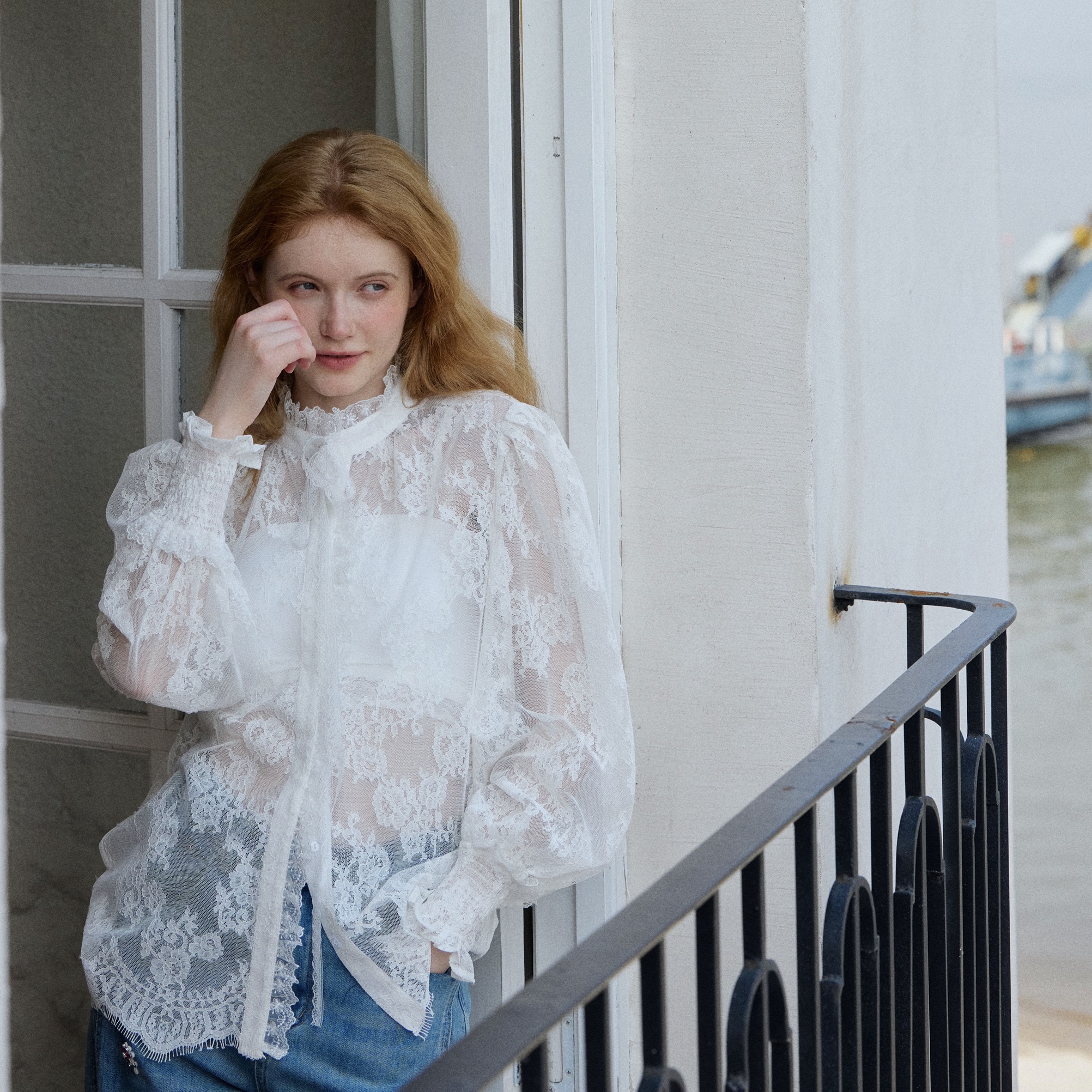 星山袋 绝美贴身透视蕾丝衬衫 木耳边小众设计感上衣超好看打底