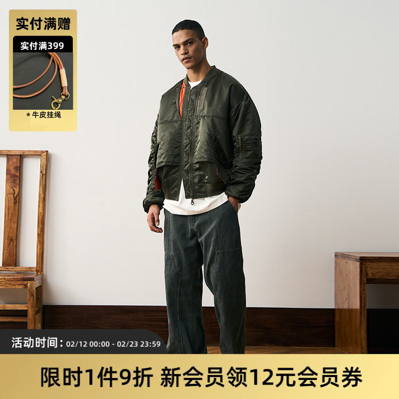 TIRES「澄砺」复古重磅光泽Bomber尼龙廓形MA1飞行夹克保暖厚外套