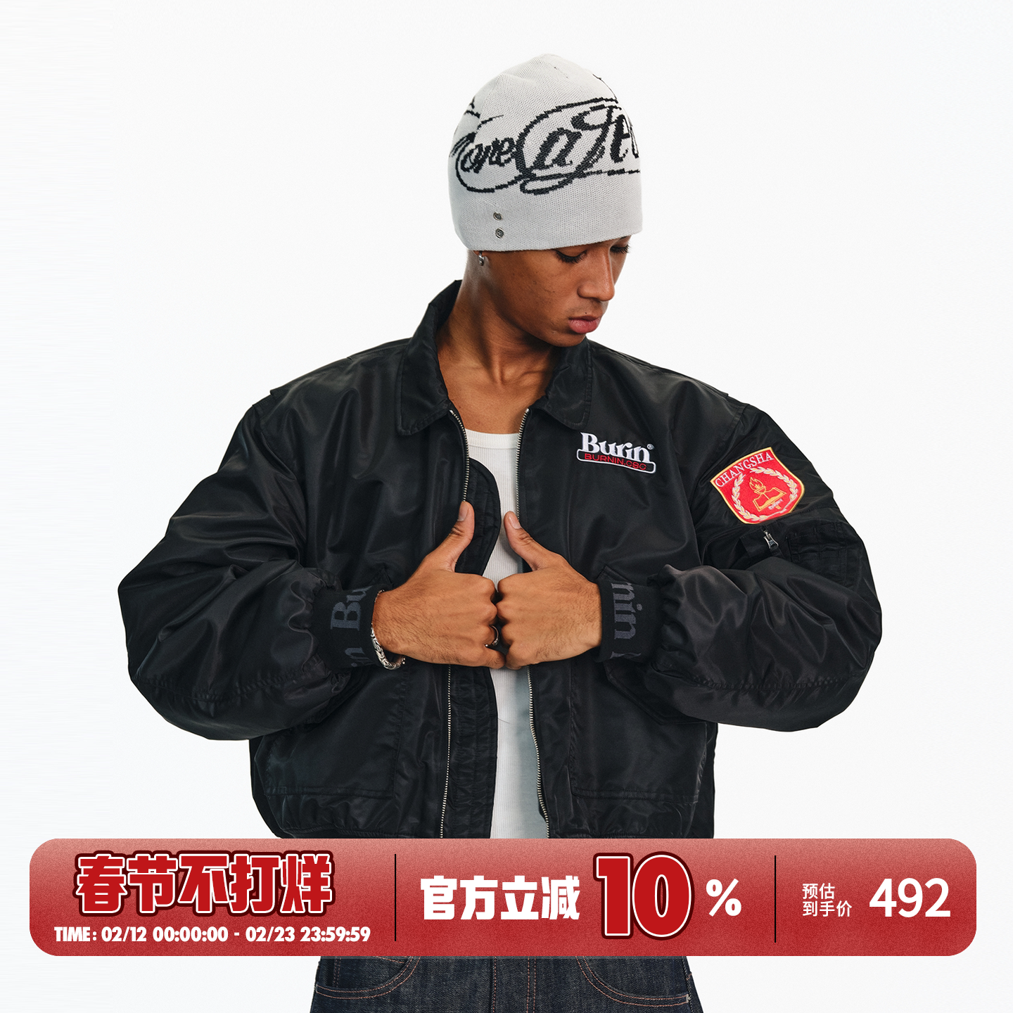 BURNIN*融合LOGO徽章MA1飞行夹克男冬季bomber保暖街头外套百搭潮