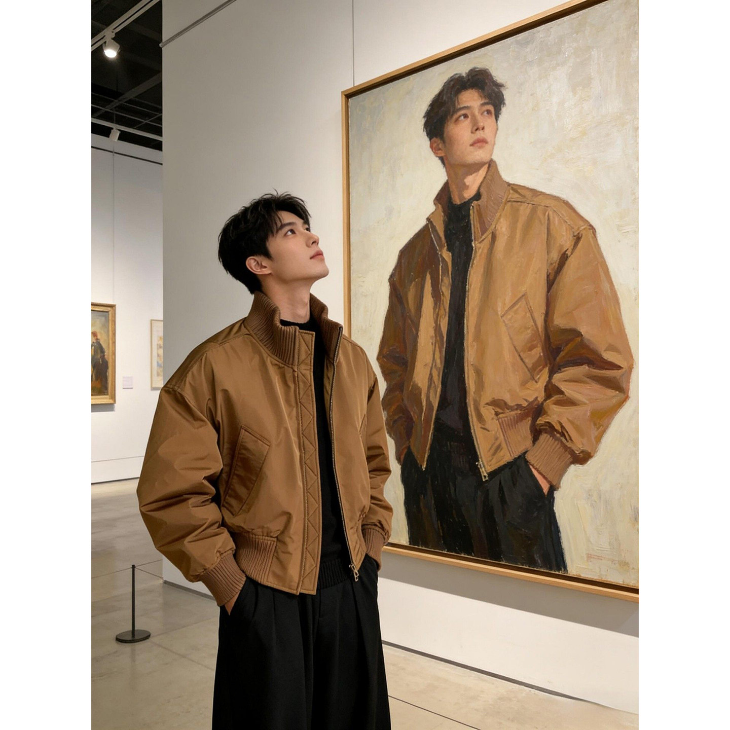 美拉德棕色ma1飞行夹克棉服男冬季短款立领外套廓形正肩棒球棉衣
