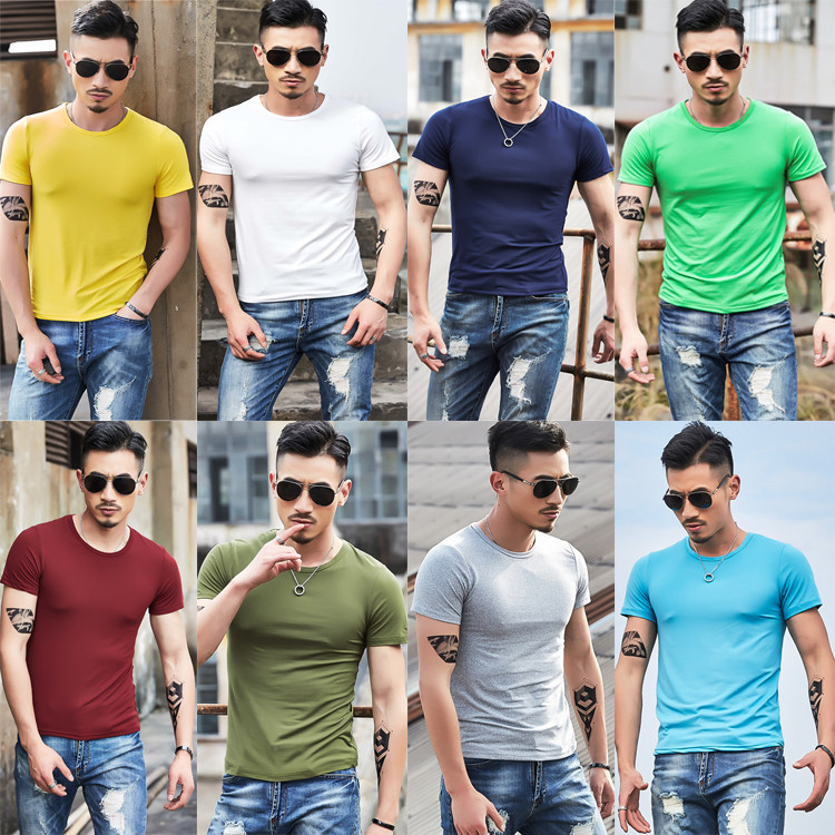 男士t恤短袖修身百搭时尚印花潮男上衣休闲圆领半袖衣服男体恤衫