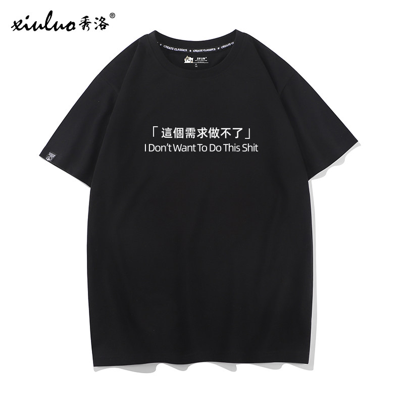 秀洛复古怀旧80年代贫困户短袖趣味文字万元户T恤男体恤纯棉宽松