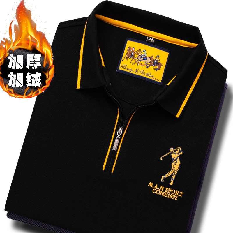 加绒半拉链长袖T恤男体恤翻领POLO衫有领上衣服加厚保暖冬季男装