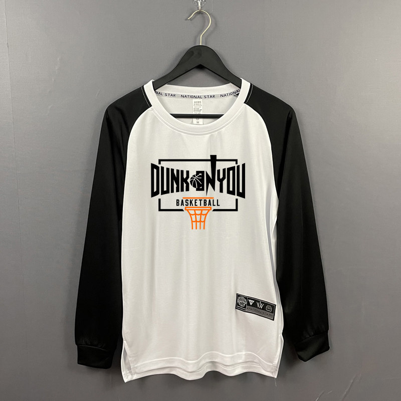 美式撞色插肩袖圆领长袖男运动健身速干透气投篮服休闲训练男体恤