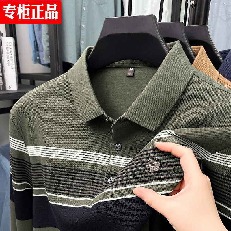商场同款棉质男士长袖t恤春秋季翻领商务条纹Polo衫男体恤上衣潮