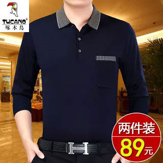 男士长袖t恤中年商务男装男体恤翻领百搭polo衫男春装有口袋上衣