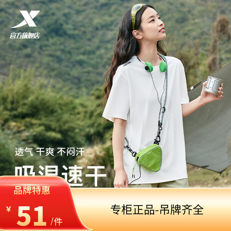特步短袖T恤女2025年夏季新款户外速干T男体恤简约运动情侣半袖