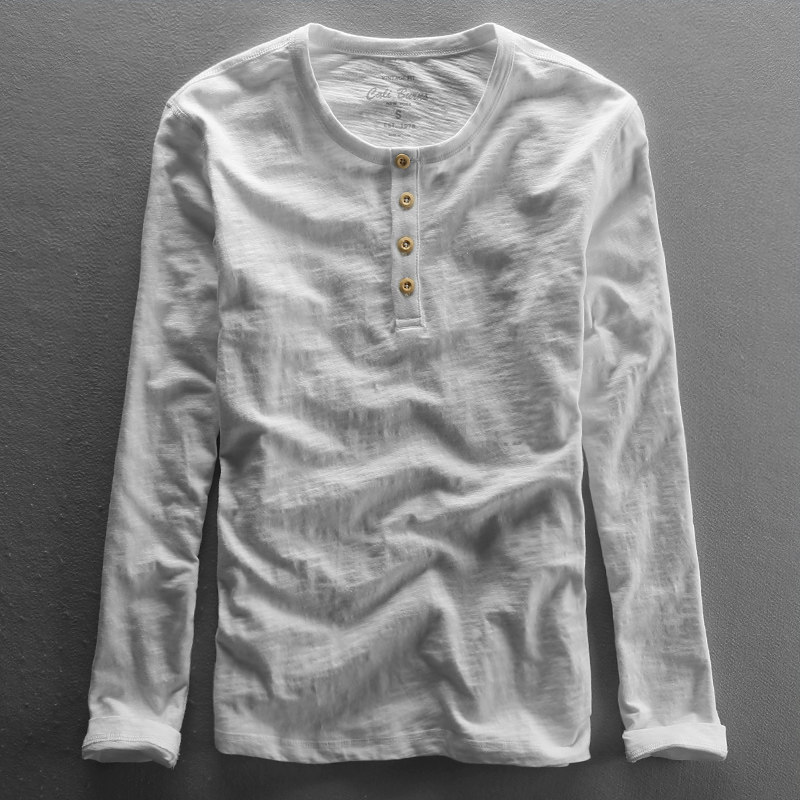 男士纯棉长袖T恤秋季新款纯色竹节棉圆领打底衫男体恤白色休闲潮T