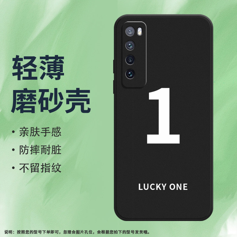 适用华为nova7i手机壳nova7SE磨砂保护套nova7全包边nova7SE乐活版JNY-L22B防摔TWO创意幸运数字1耐磨软壳*