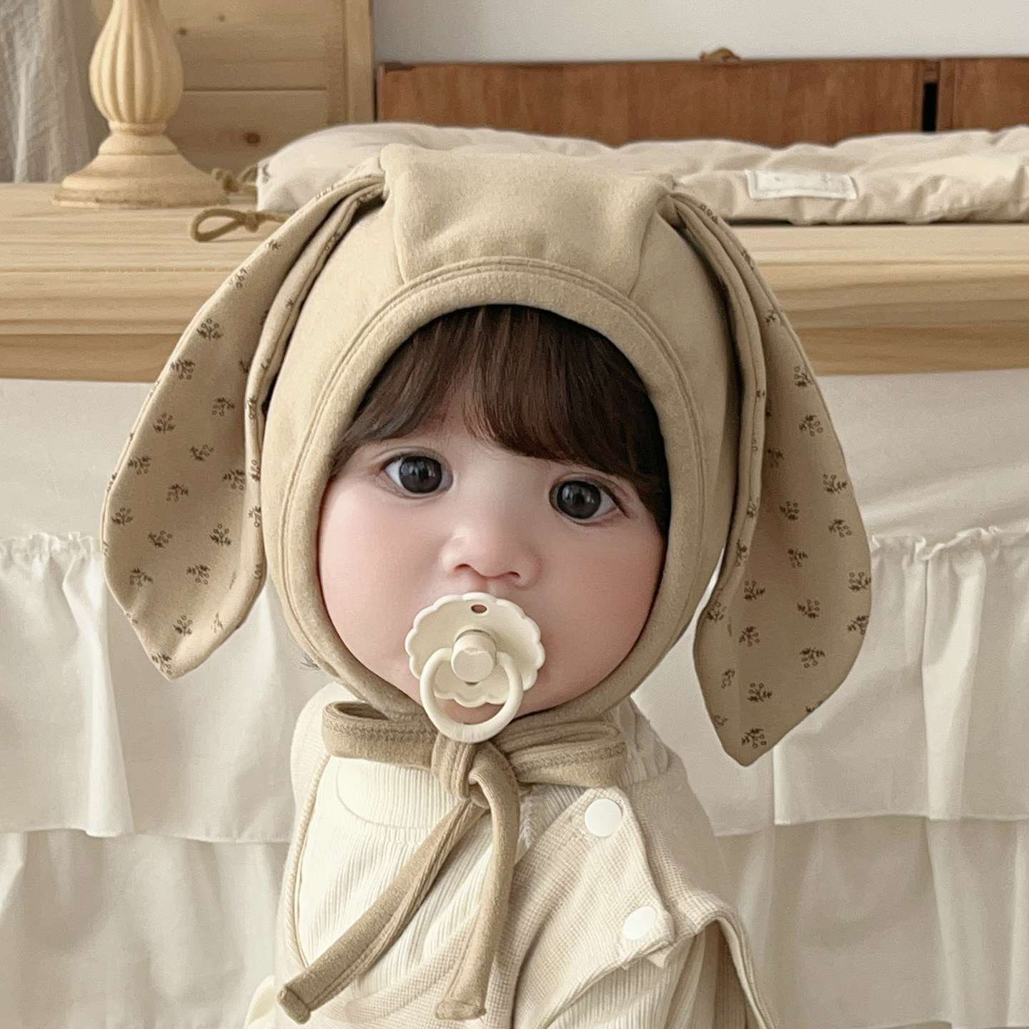 婴儿帽子秋冬可爱碎花兔耳朵澳绒保暖小月龄新生儿宝宝儿童护耳帽