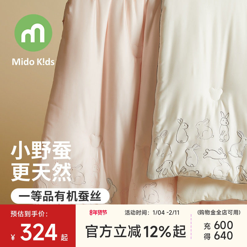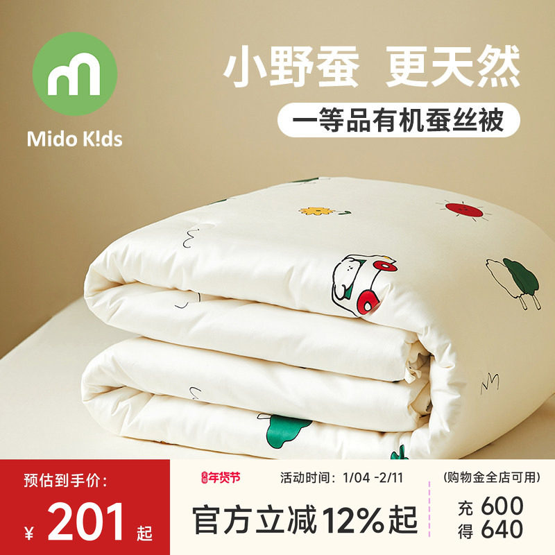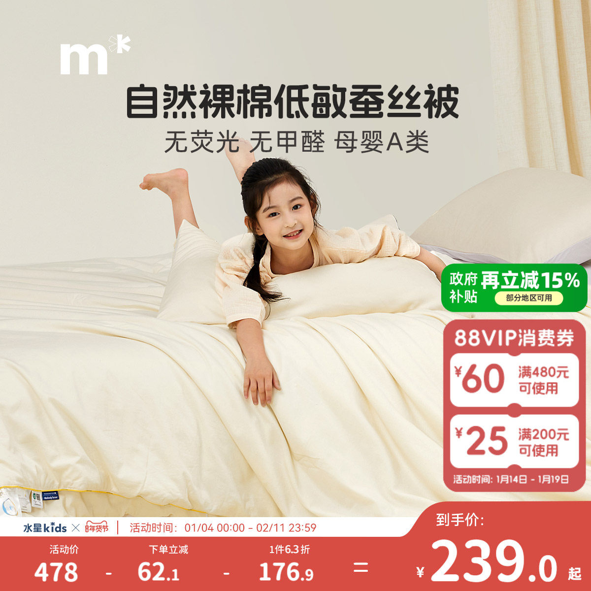 水星家纺儿童蚕丝被低敏长绒棉双宫茧蚕丝被子母被芯保暖新年送礼