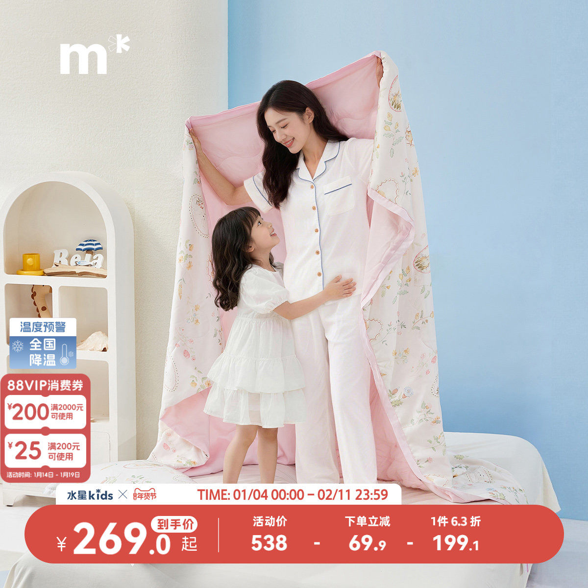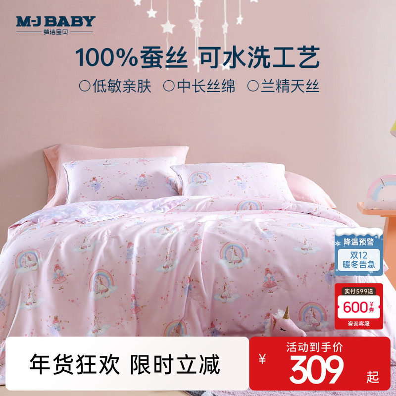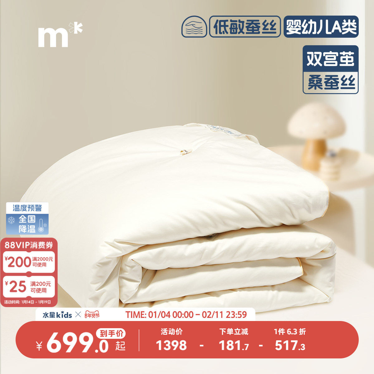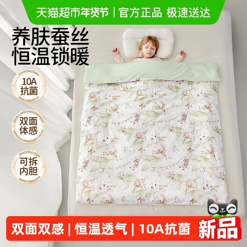 水星家纺母婴A类全棉低敏蚕丝被儿童子母被冬被四季通用新年礼物
