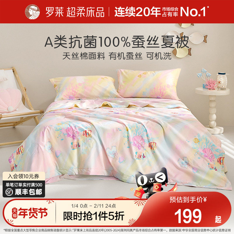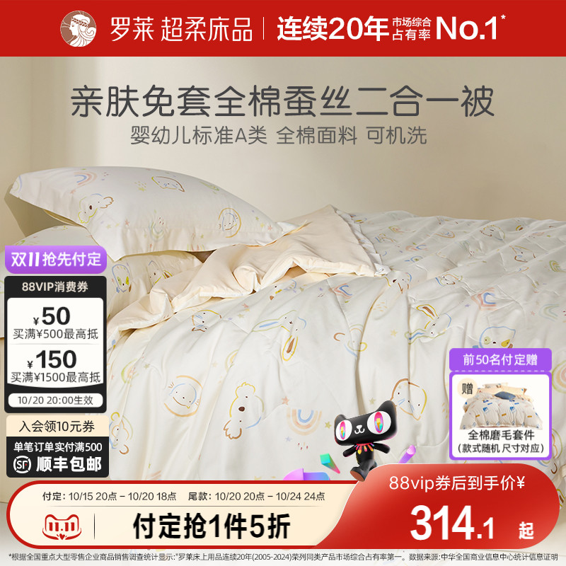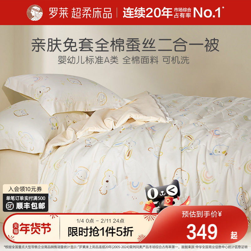 罗莱家纺官方儿童蚕丝被冬被二合一子母被全棉被子被芯四季春秋被