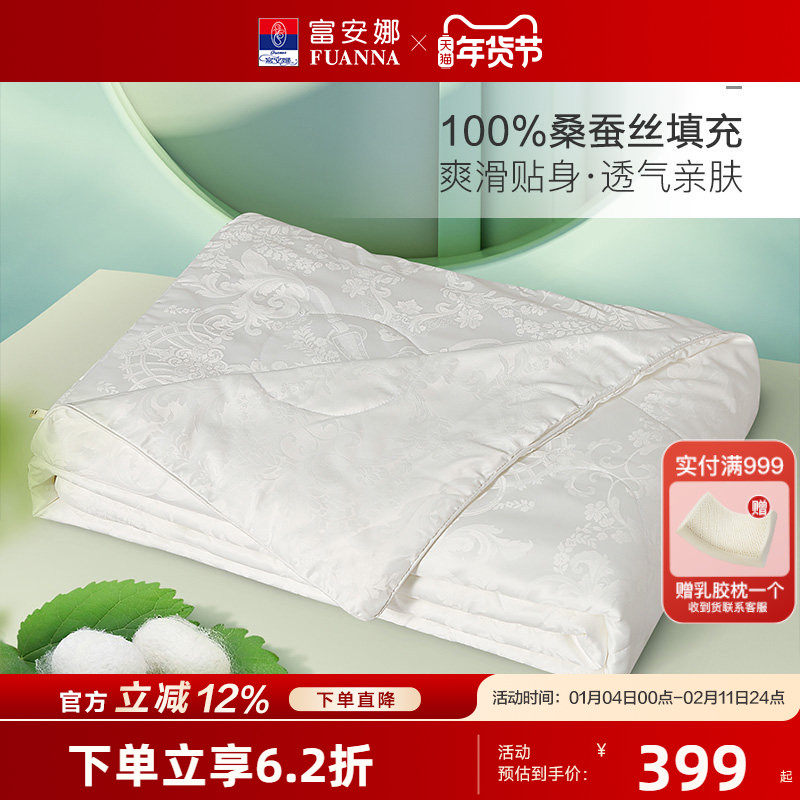 富安娜蚕丝被100桑蚕丝空调被 单双人儿童蚕丝被子提花被芯夏凉被