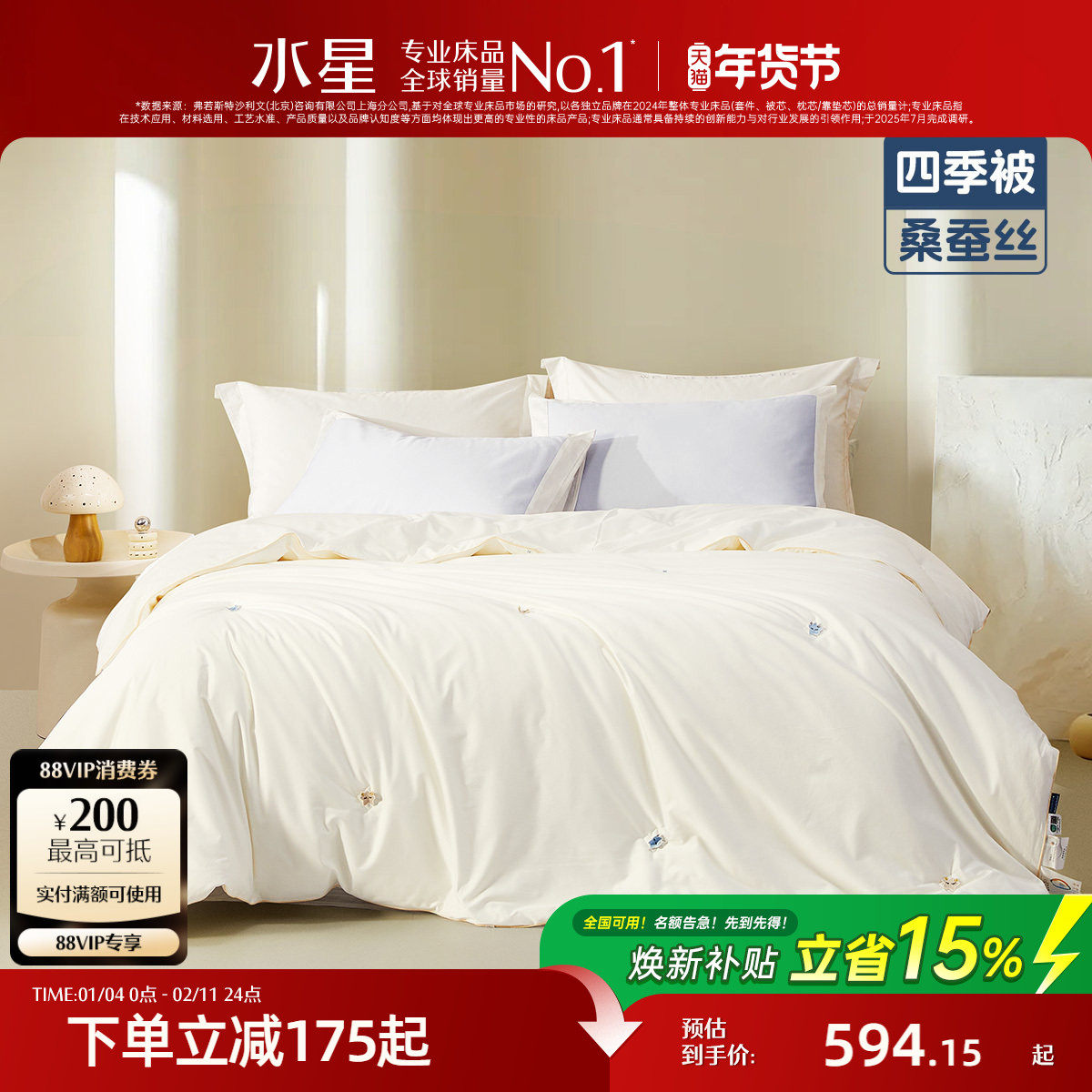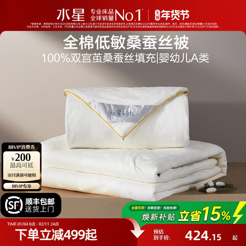 水星家纺长绒棉桑蚕丝四季被婴幼儿A类抑菌低敏儿童蚕丝被芯床品