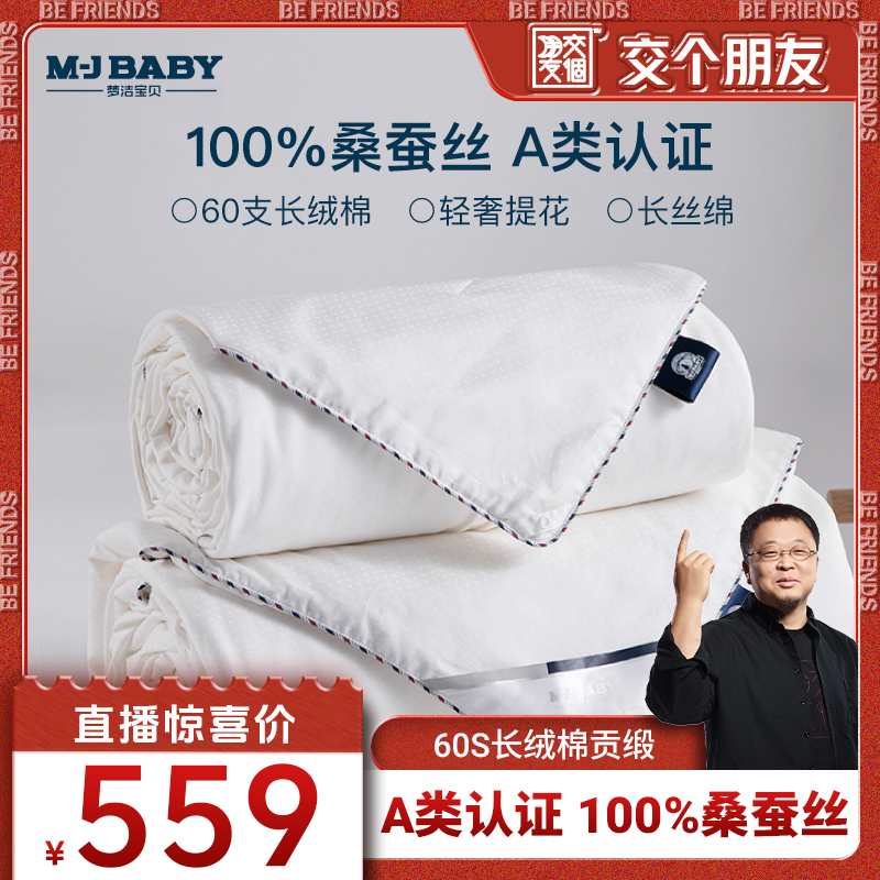 水星家纺母婴A类全棉低敏100蚕丝被儿童子母被二合一冬被四季通用