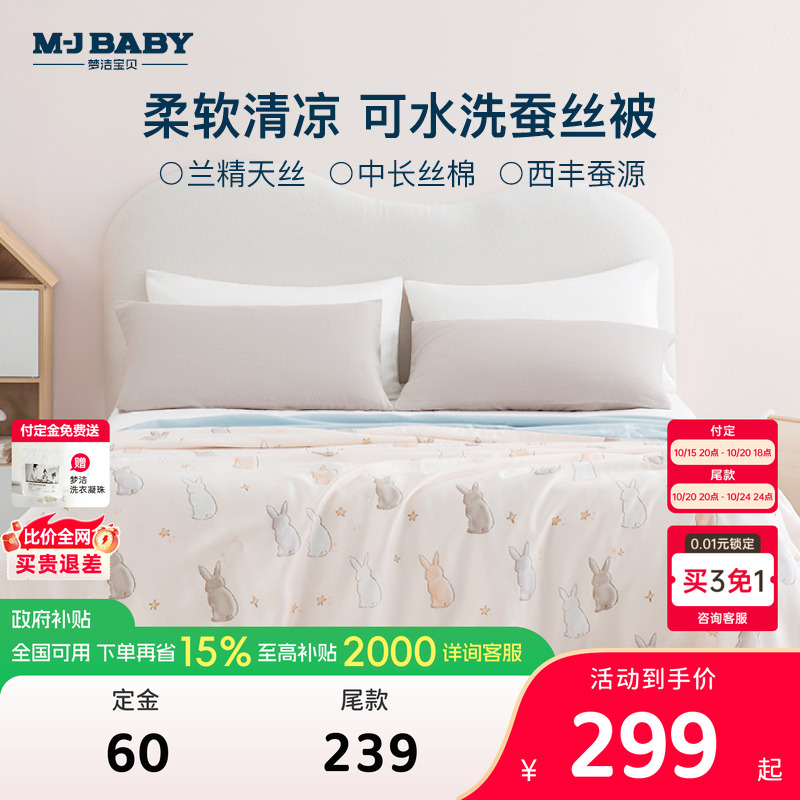 2025新品梦洁宝贝小凉皮儿童蚕丝被天丝夏凉被可水洗夏被空调被