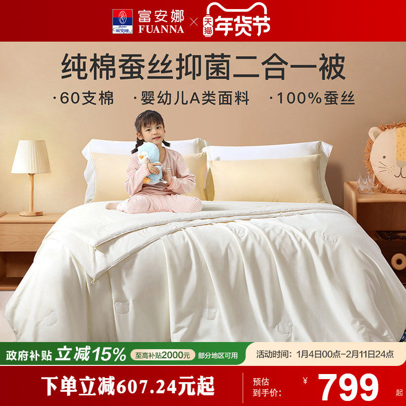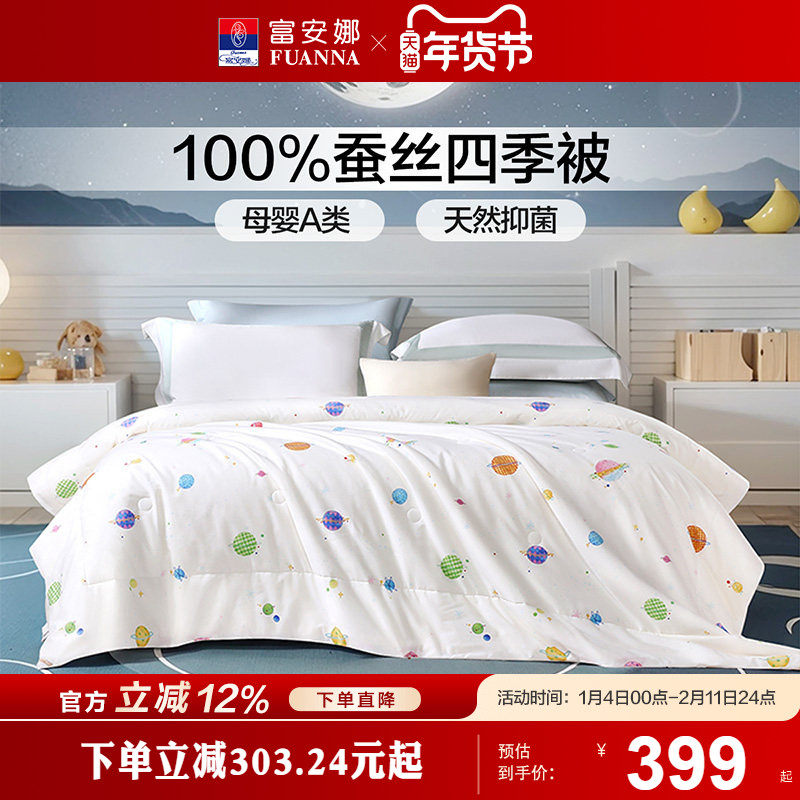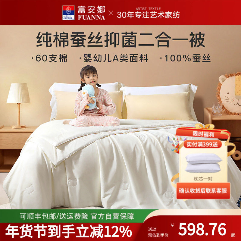富安娜儿童蚕丝被子春秋被四季被冬季二合一被空调被纯棉蚕丝被芯