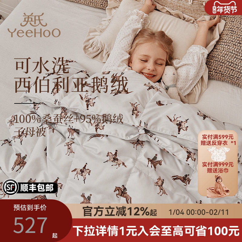 英氏乐享儿童蚕丝被子婴儿宝宝鹅绒子母被春秋可水洗被芯四季通用