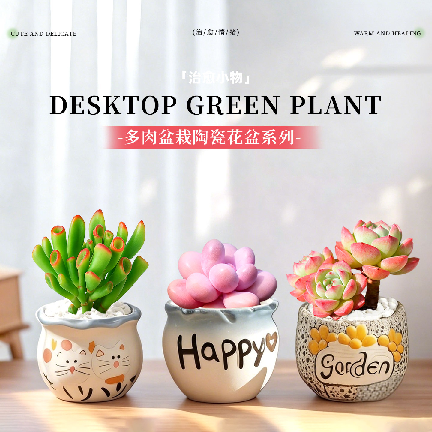 多肉植物组合室内小盆栽办公室桌面高端绿植花卉带陶瓷花盆好养活