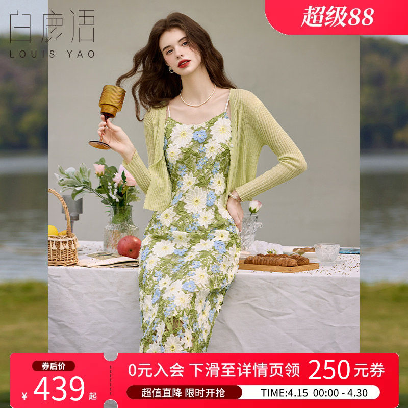 针织外披+碎花吊带连衣裙两件套夏显瘦气质温柔风小清新时尚套装
