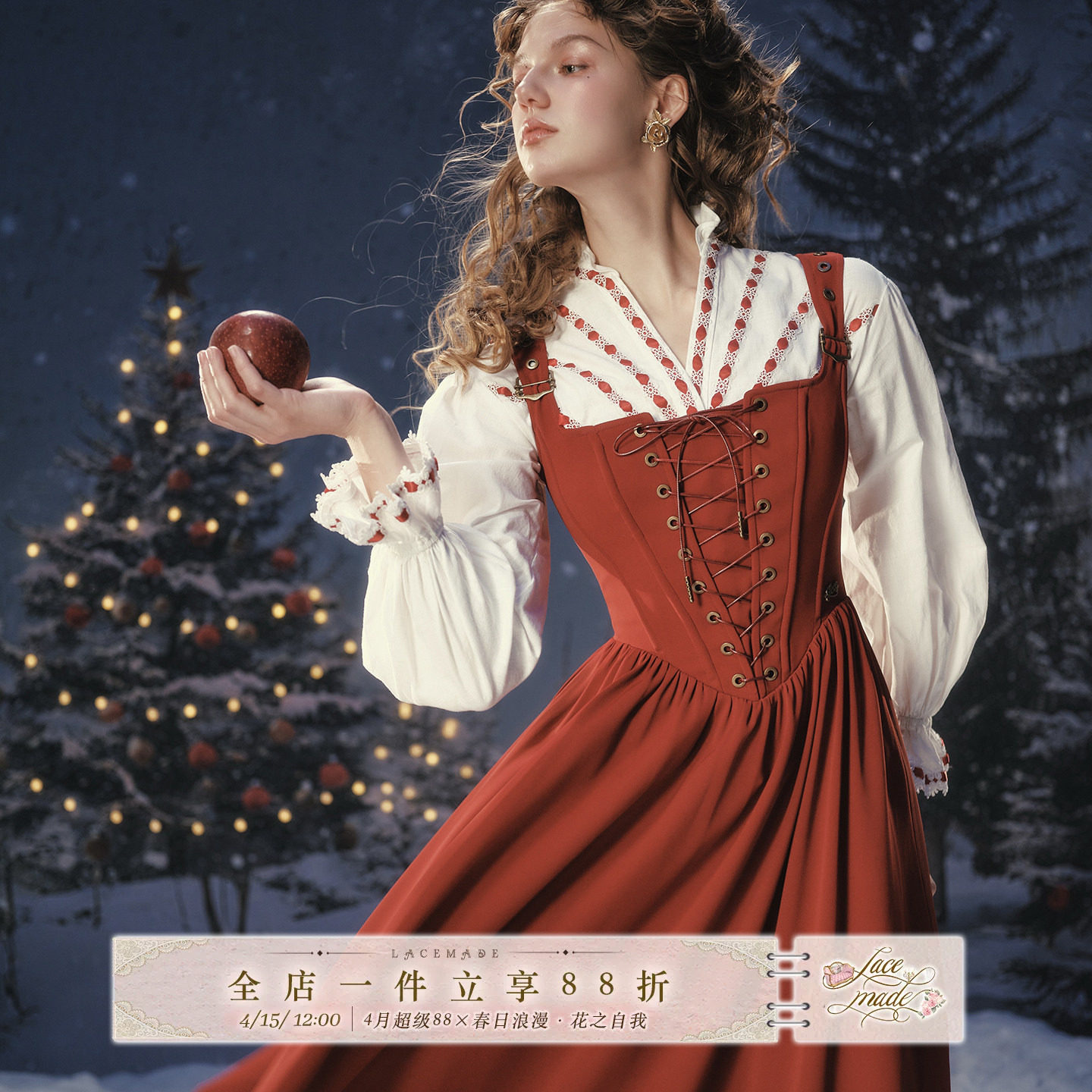 LaceMade 红箭客 法式复古显瘦通勤长款红色吊带连衣裙套装圣诞裙
