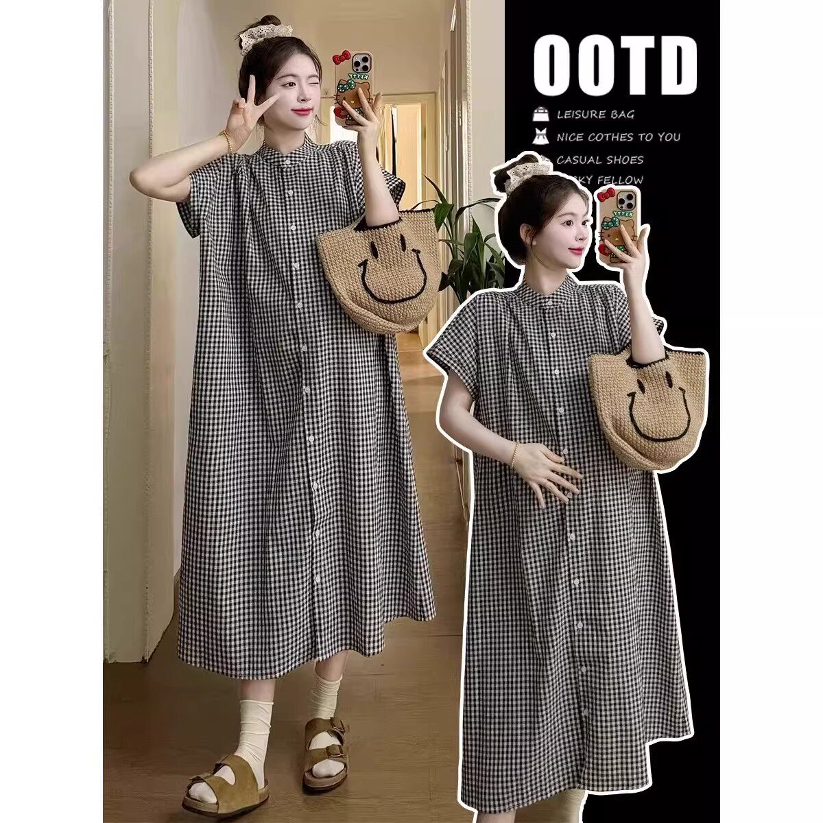 大码胖mm衬衫连衣裙女夏季高级感宽松显瘦叠穿马甲长裙两件套装潮