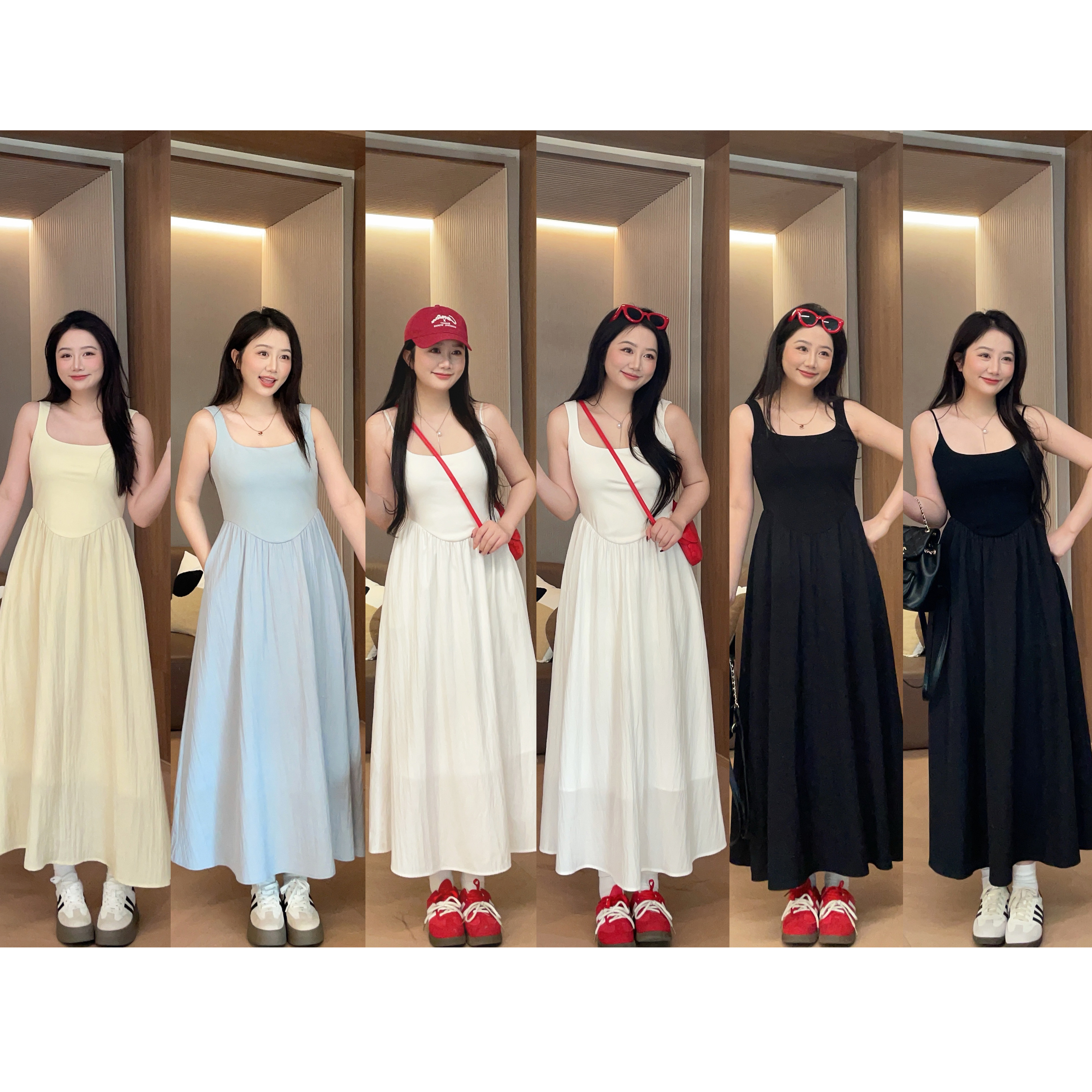 大萌萌微胖定制26春夏白月光吊带连衣裙素色拼接收腰女裙显瘦套装