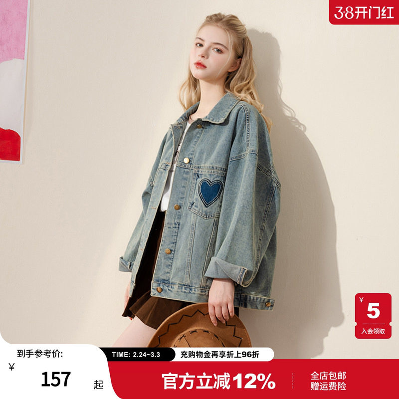 mc2翻领牛仔外套女春秋季新款爱心剪边宽松bf短款时尚流行好看洋