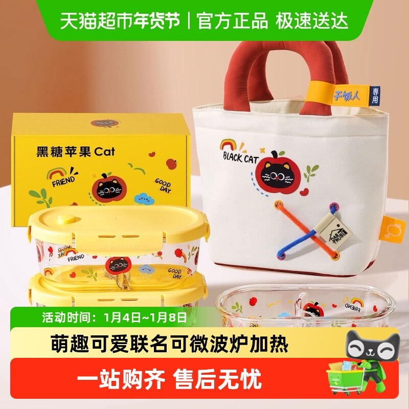 黑糖苹果CAT玻璃汤碗早餐杯上班族微波炉加热饭盒便携密封保鲜盒