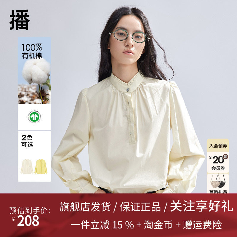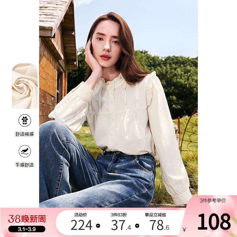 播木耳边衬衫女商场同款2024新款文艺风长袖内搭衬衣BDR1HD0068