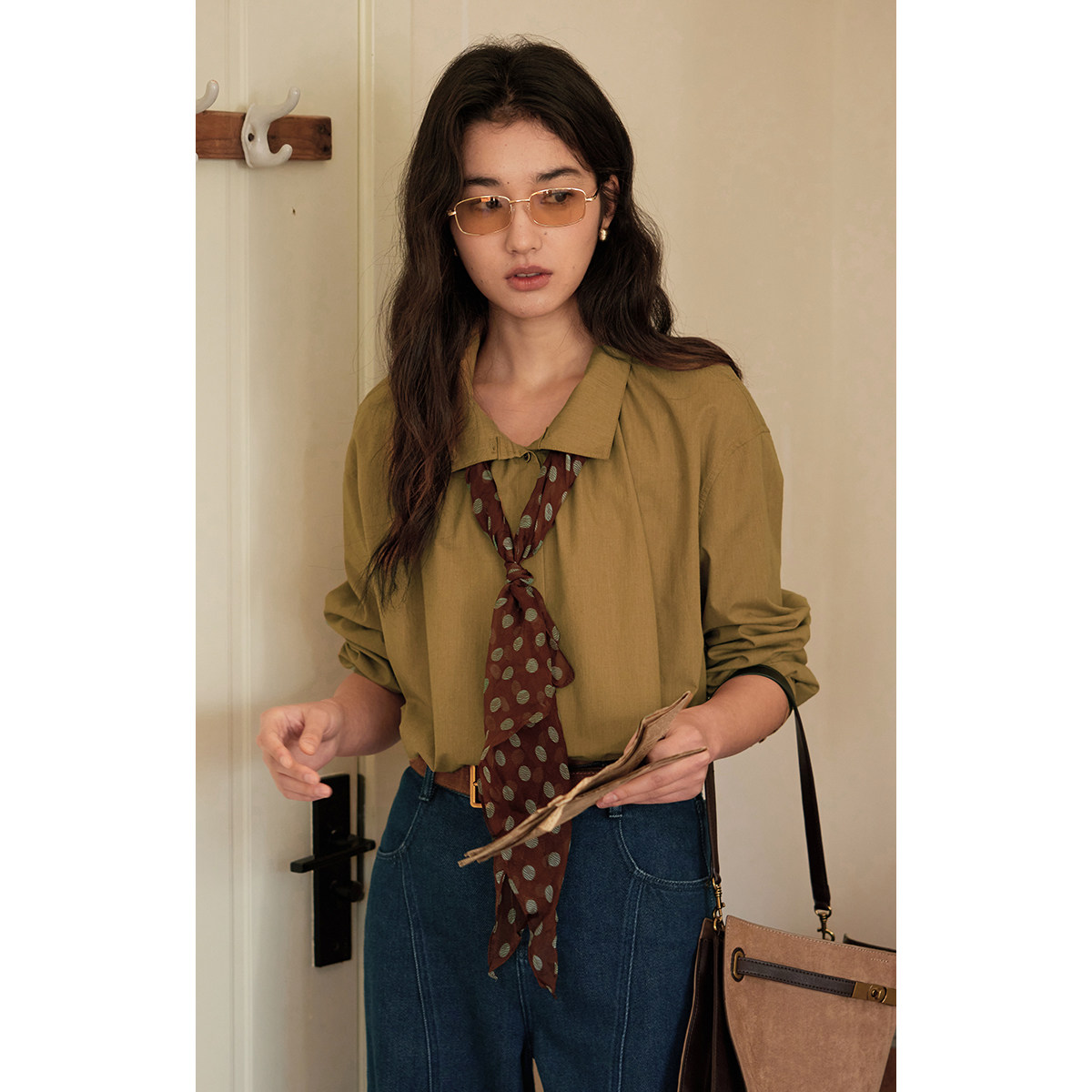- 军绿色长袖衬衫 透视